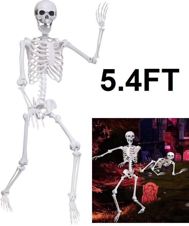 wocst posable Halloween full body skeleton decoration - 5.4ft - white