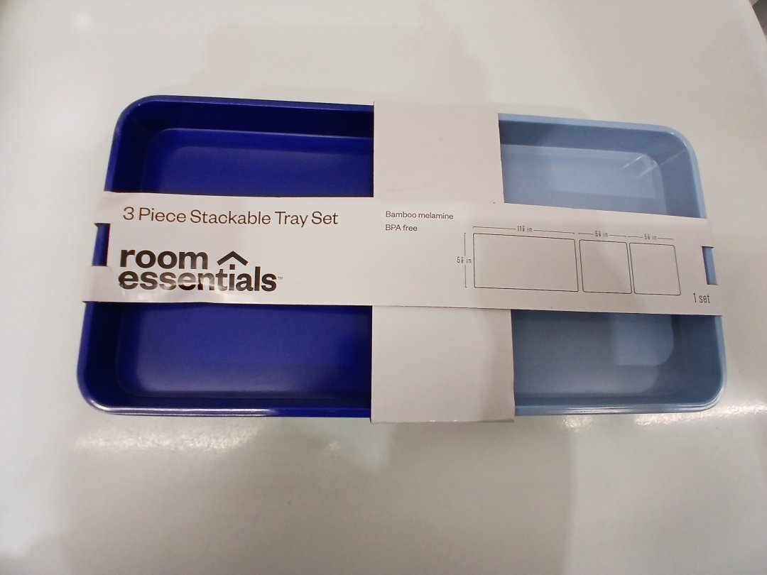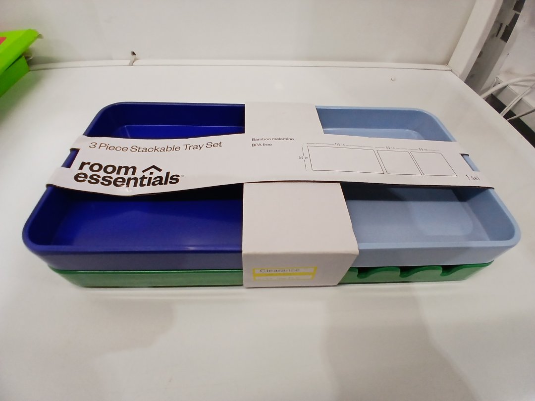 3PC Room Essentials Stackable Melamine Decorative Trays - blue/green