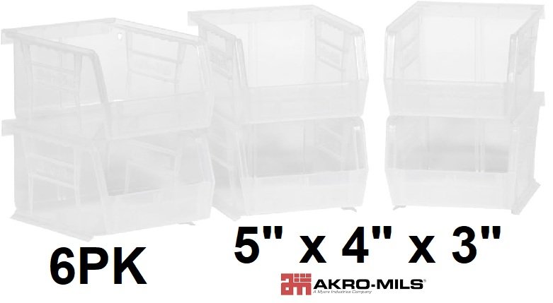 6pk akro-mils AkroBins stackable space saving bins - 5" x 4" x 3" - clear