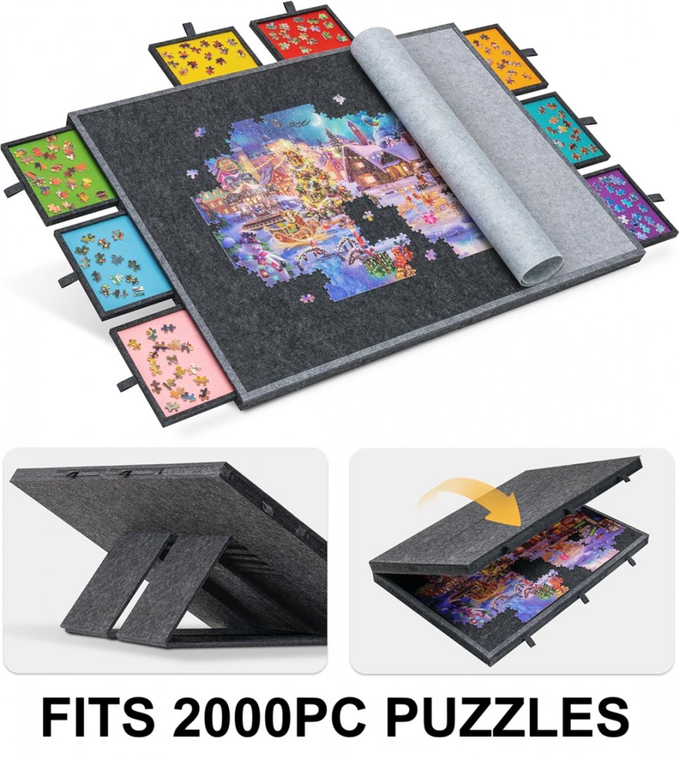 Lavievert Tilting Puzzle Board with 8 Drawers & Cover - 42.5" X 31.5" - holds up to 2000 pieces - grey (MODEL: PTB057)
