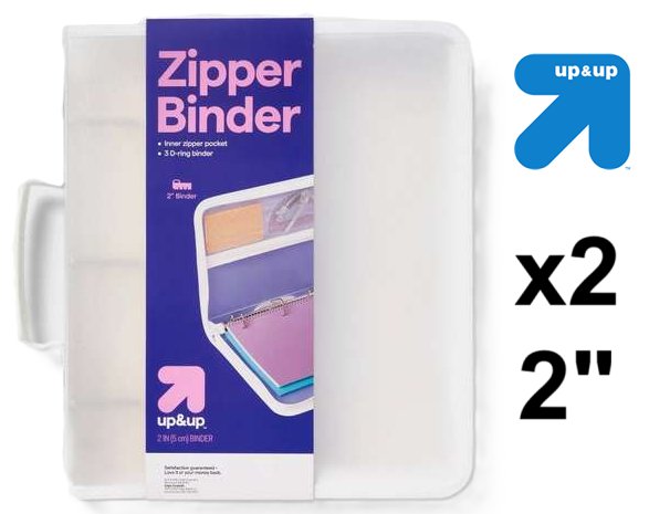 2 UP&UP 3 D RING ZIPPER BINDDER - 2"- Clear