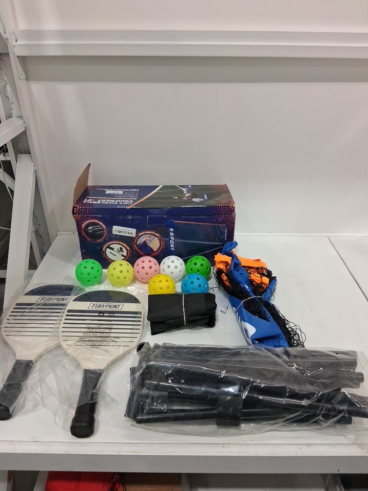 12pc furypiont portable pickleball set - includes 2 wooden rackets/8 pickleballs/carry bag/10ft x 2.6ft net - multi-colour