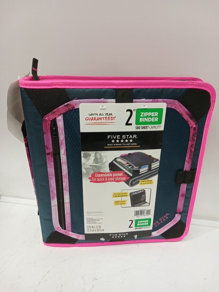 five star Sewn Zipper Binder with Expansion Panel - 2" - Navy/Pink