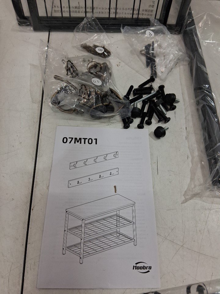 hoobro Coat Rack and Shoe Bench Set - 27.6" x 3.1" (rack)/27.6" x 11.8" x 18.1" (bench) - rustic brown/black