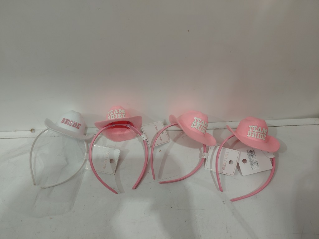 4PC ID DO CREW TEAM BRIDE & BRIDE cowboy hat hair band - white/pink