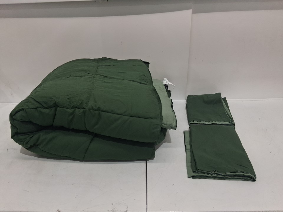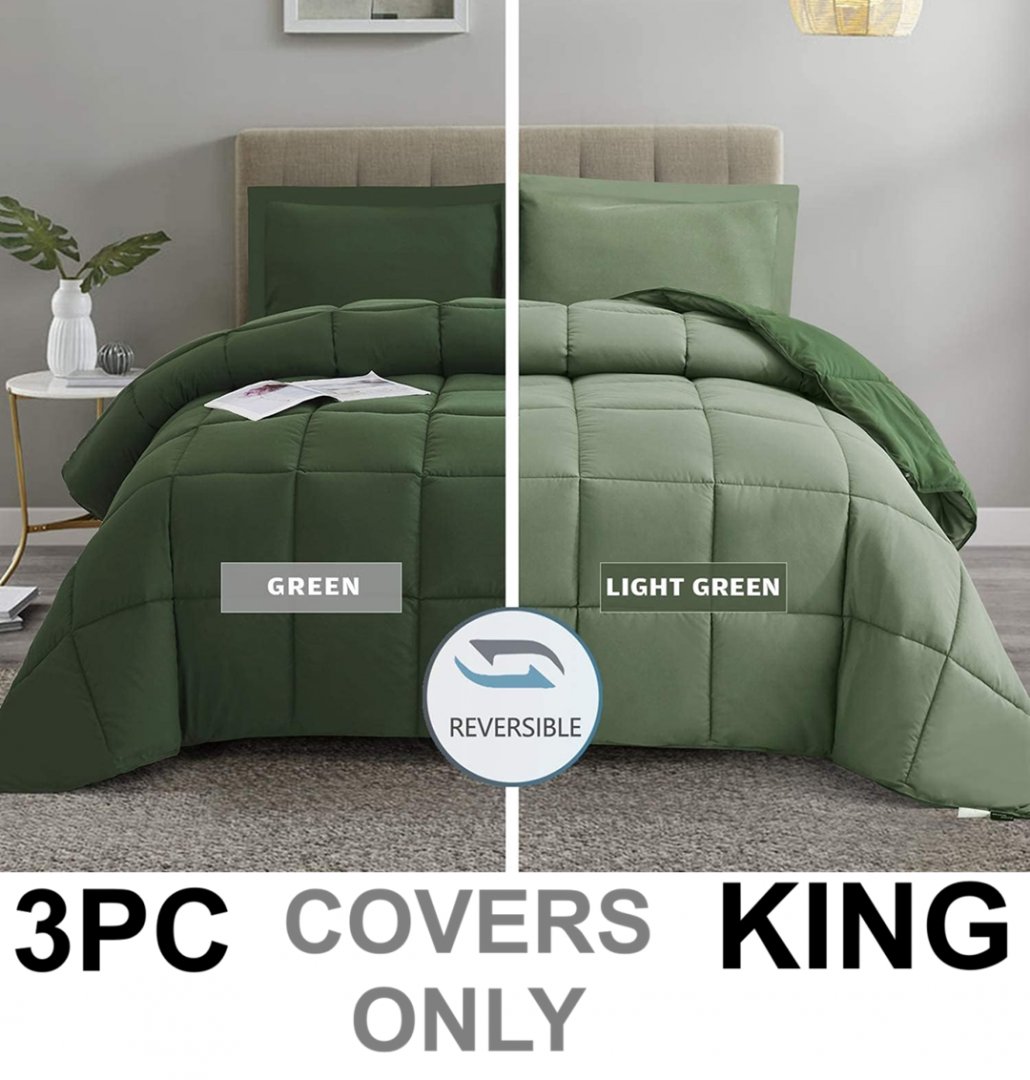 3PC HIG All Season Reversible Comforter with Two Shams - 86.6" X 94.4" KING SIZE - OLIVE GREEN