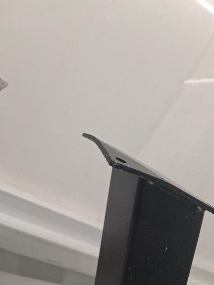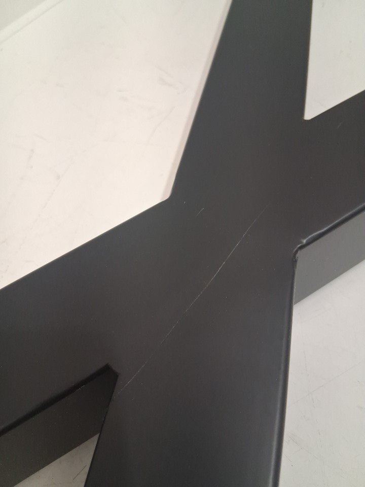 bent on the top of one leg, scratches/scuffs on the bottom of item, see photos