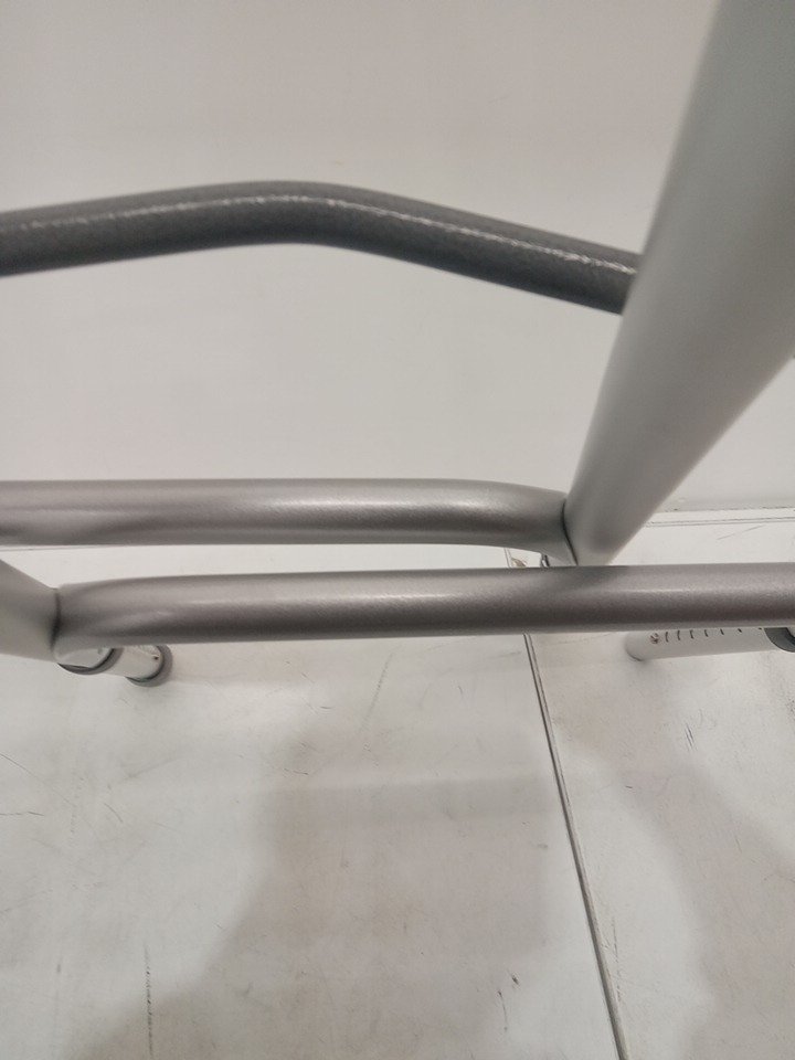 upon inspection we have found that one of the rubber leg covers is missing and one of the metal bars is slightly bent, this seems to be due to shipping and handling. see photos below.