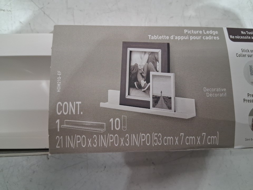3M COMMAND PICTURE LEDGE, HOLDS 5LBS , DECORATIVE SHELF, 21" x 3", WHITE (MODEL: HOM21Q-EF)