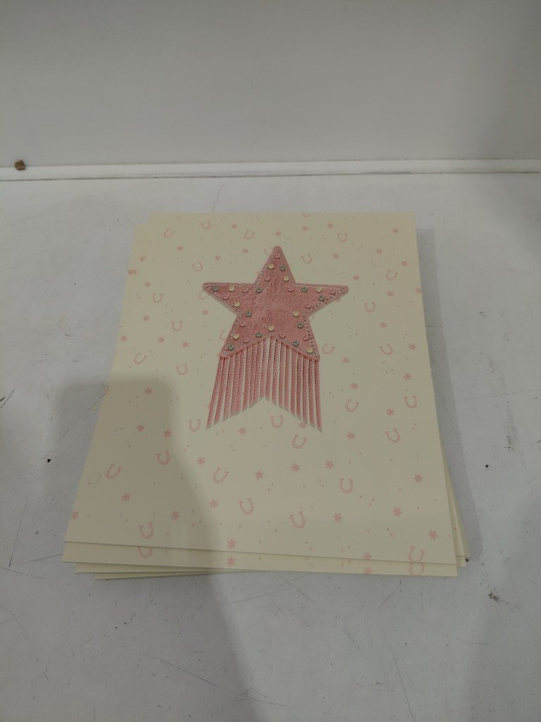 13 Gartner Studios 2 Pocket Howdy Girl Fringed Star Patch Paper Folder - 11.5" x 9.25" - cream/pink