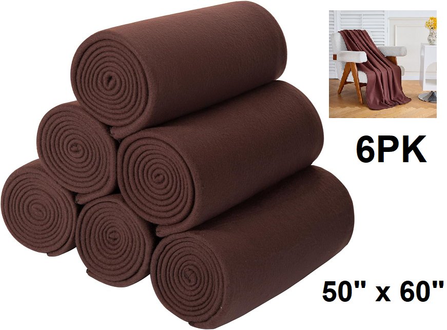 6pk CAI TENG Fleece Throw Blankets - Lightweight Warm Soft Cozy - 50" x 60" - chocolate brown