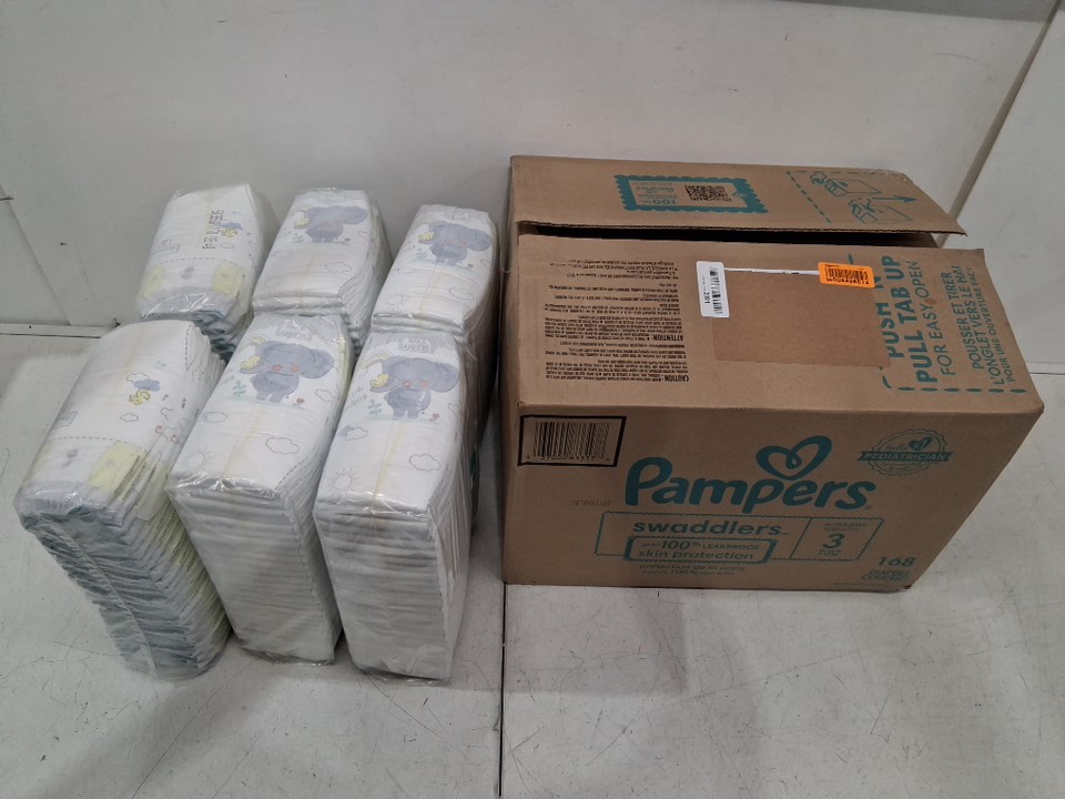 168PK PAMPERS SWADDLERS DISPOSABLE DIAPERS - SIZE 3 - (16-28LBS)