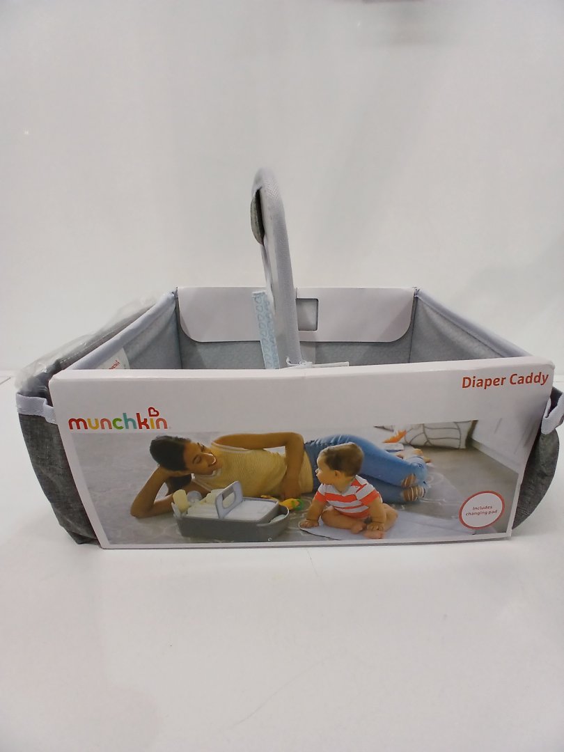 MUNCHKIN PORTABLE DIAPER CADDY ORGANIZER WITH WIPABLE CHANGING PAD - GREY (MODEL: ‎17123)