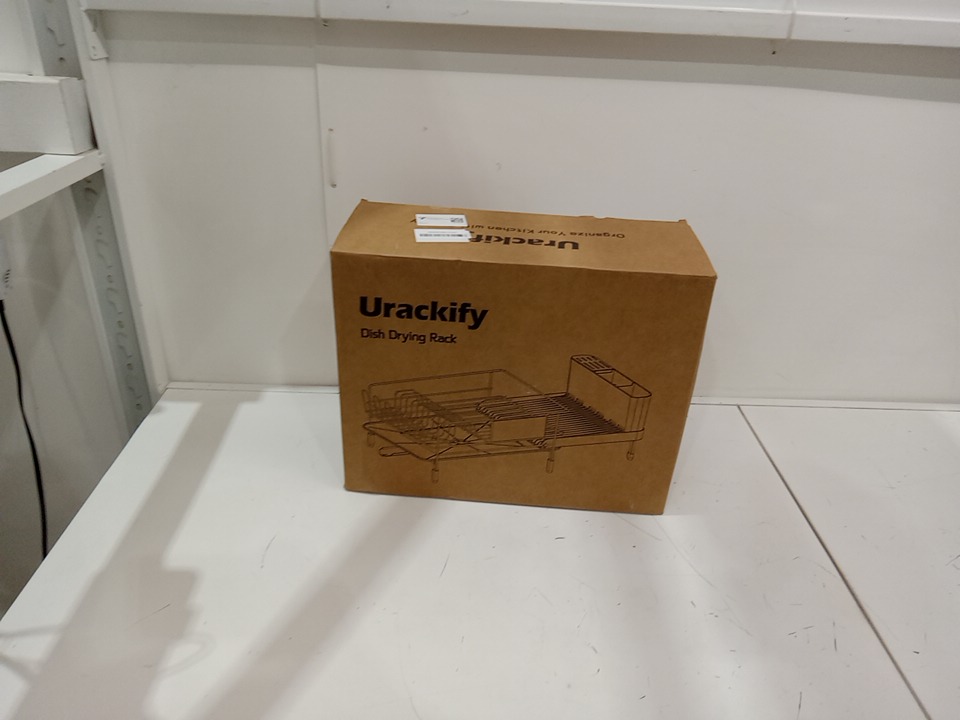 Urackify Expandable Dish Drying Rack with Drainboard - 16"-26" x 13" - Black/Stainless Steel