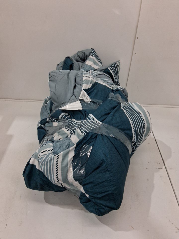 Queen size comforter - 104" x 90" - BLUE/green/white stripe