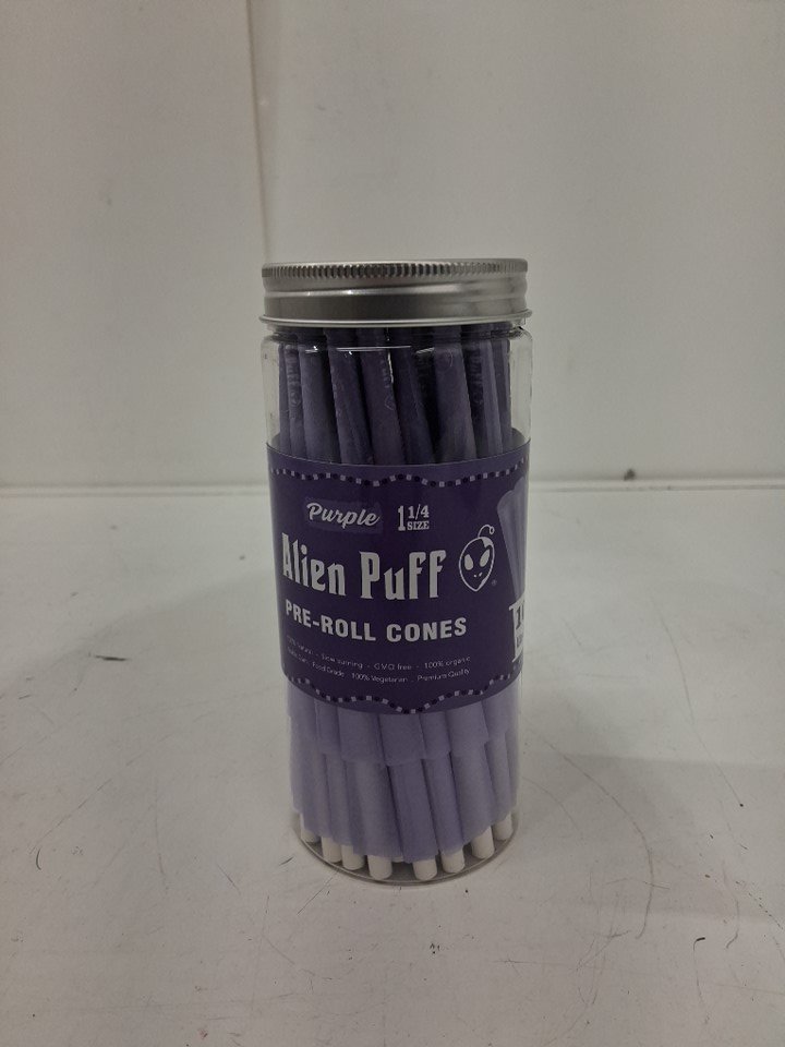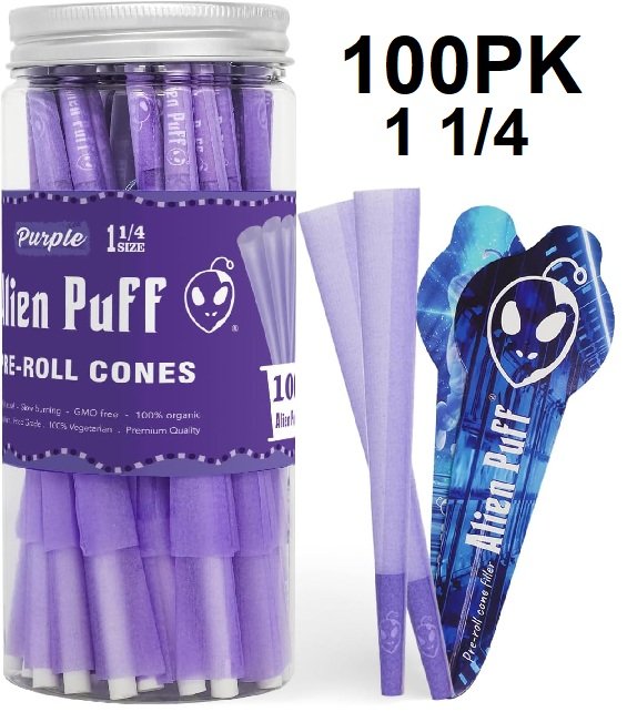 100pk yacool alien puff pre-rolled cones with fillers - 1 1/4 size - purple