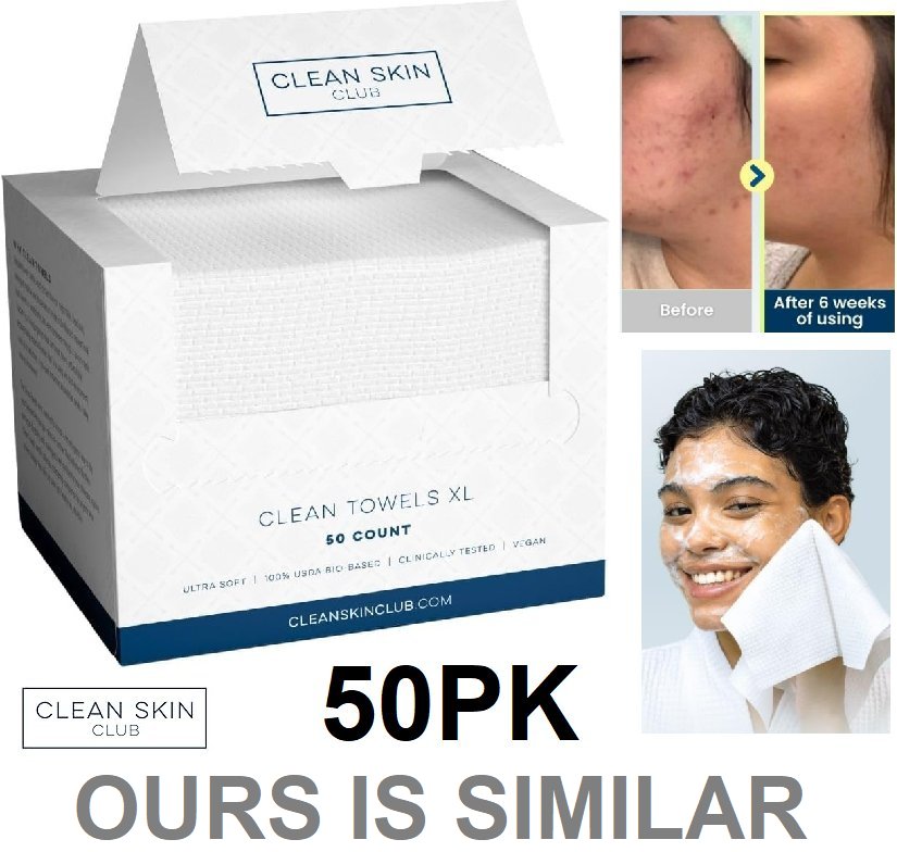 50PK Clean Skin Club Clean Towels - Clinically Tested Advanced cellulose fiber technology