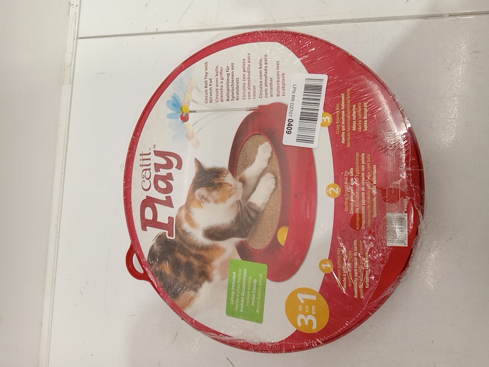 CATIT PLAY 3-IN-1 CAT SCRATCH PAD WITH CIRCUIT BALL AND BEE TOY - RED (model: 43000)