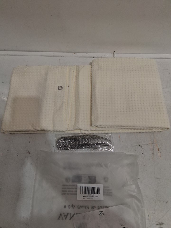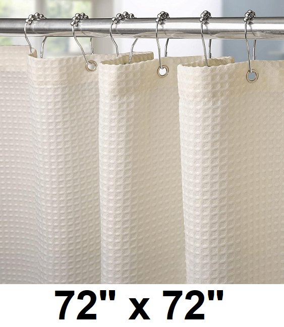 Waffle Weave Shower Curtain with Stainless Steel Hooks - 72" x 72" - cream