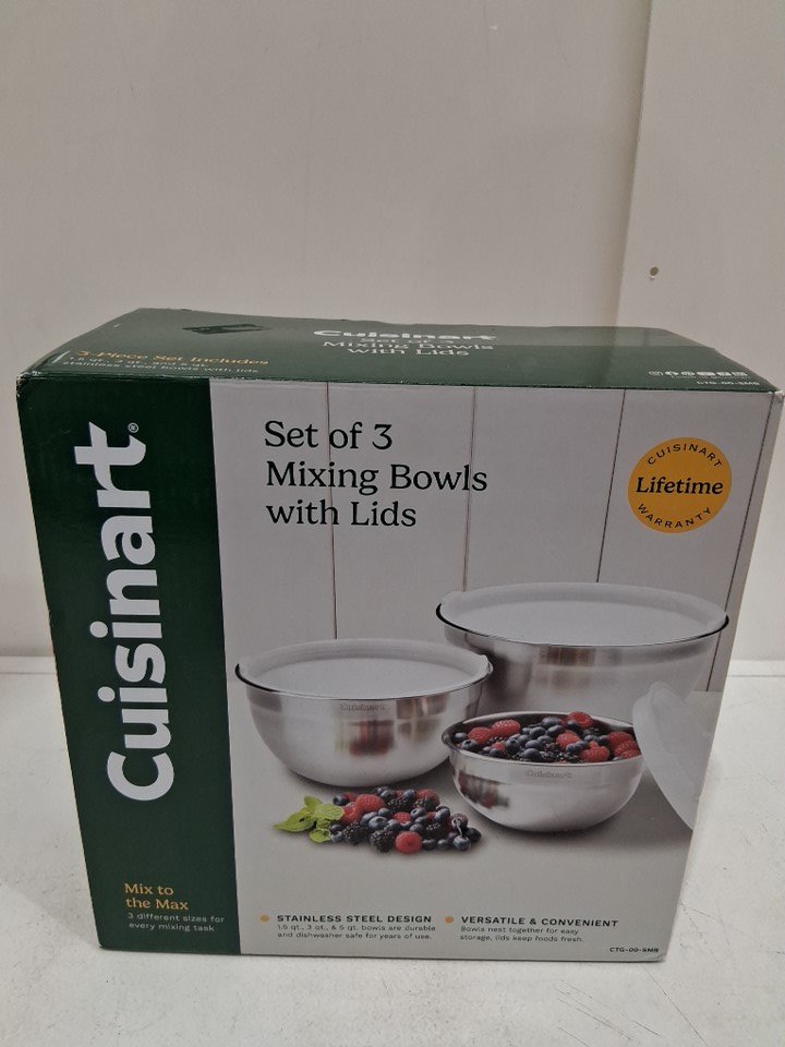 6PC Cuisinart Mixing Bowls Set with lids - Stainless Steel - (Model: CTG-00-SMBC)