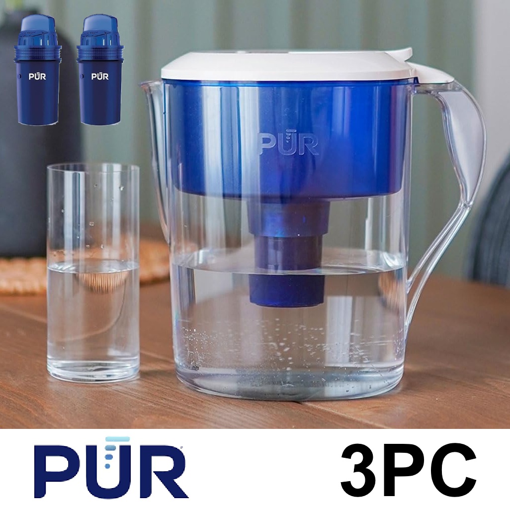 3PC PUR Dishwasher Safe Filter Water Pitcher With Replacement Filters - 11-CUP - Blue/Clear