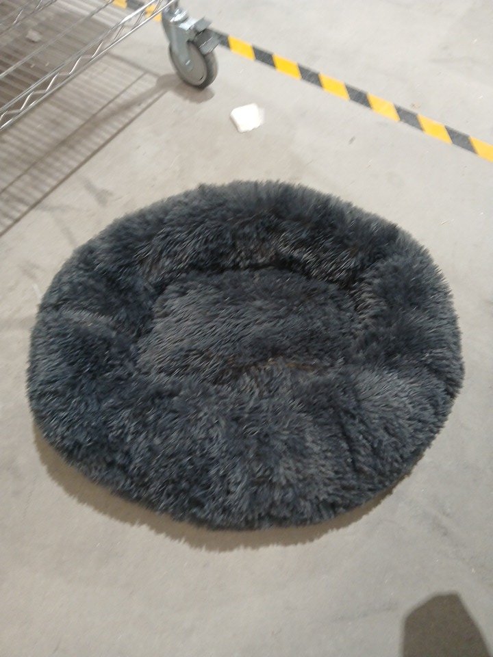 -ROUND FAUX FUR SHAG DONUT CUDDLER PET DOG/CAT BED - 36" - Navy Blue