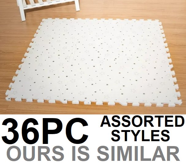KIDS 36PC ASSORTED FOAM TILE MAT SQUARES - 12"/EACH - ASSROTED COLOURS