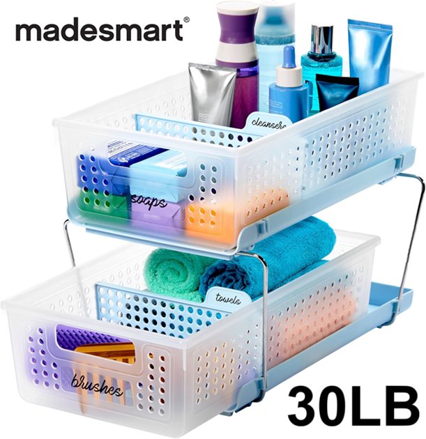 madesmart Two Tier Organizer wITH PLASTIC DIVIDERS - 30LB - Blue
