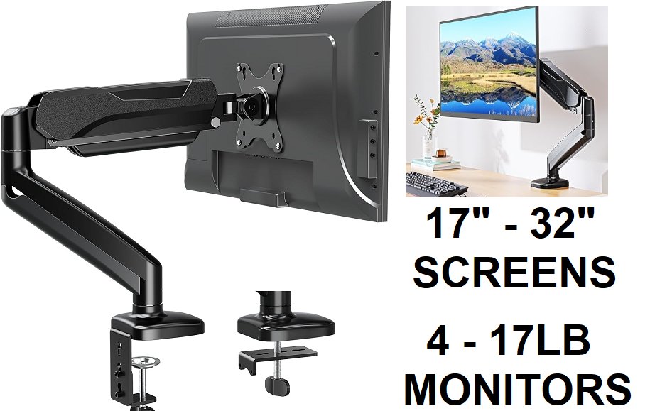 ADJUSTABLE Single Monitor Desk Mount - 17" - 32" screens - 4 - 17lb monitors - black - (MODEL:MR1001)