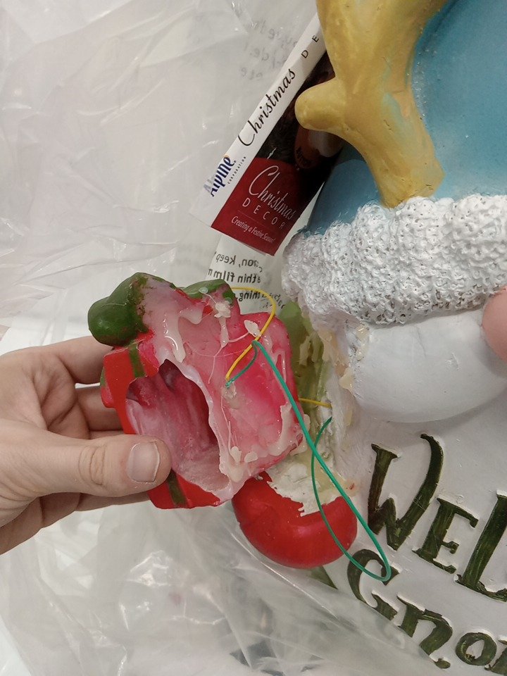 Th present is broken off, can likely be reattached but there will still be a hole.