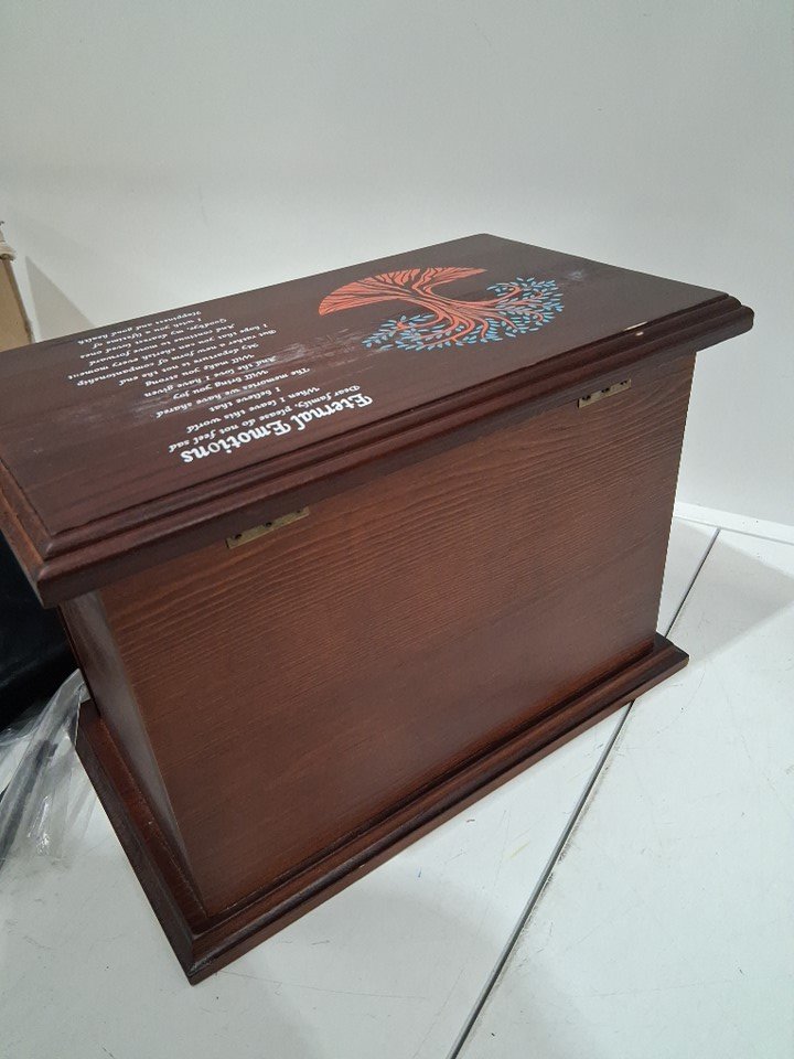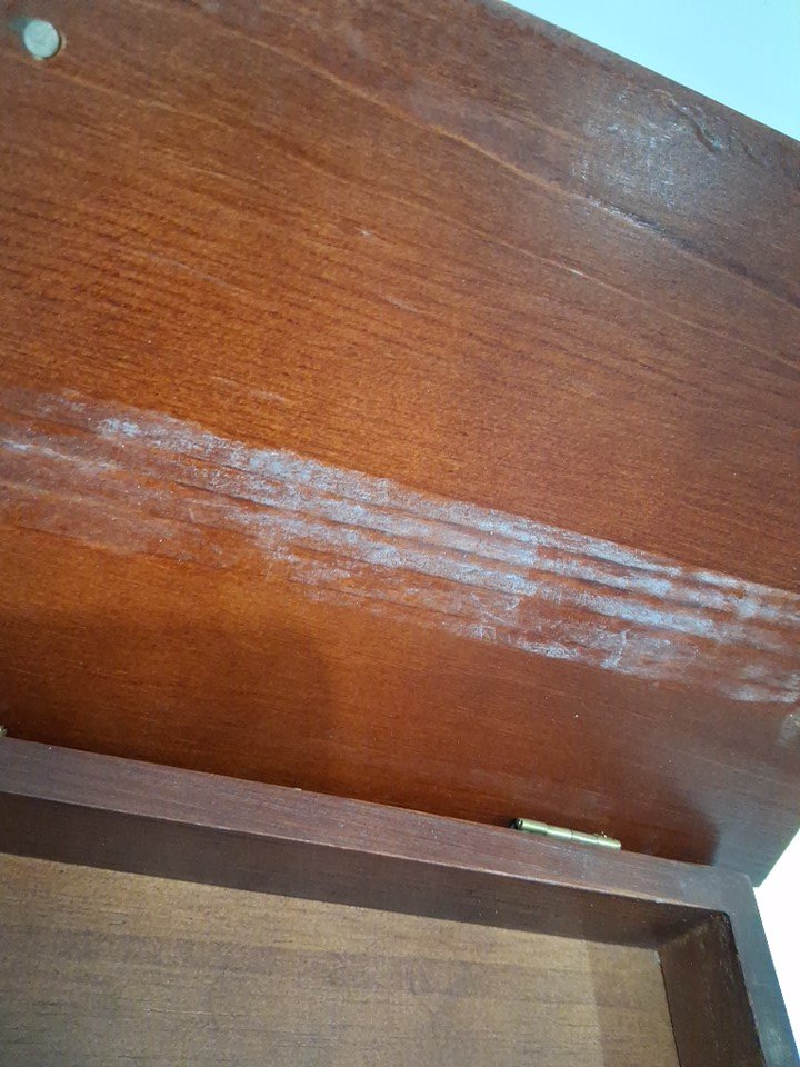 there is some faded striped line on both the inner part of the lid and on the top. as well as some small scuff on the edges.