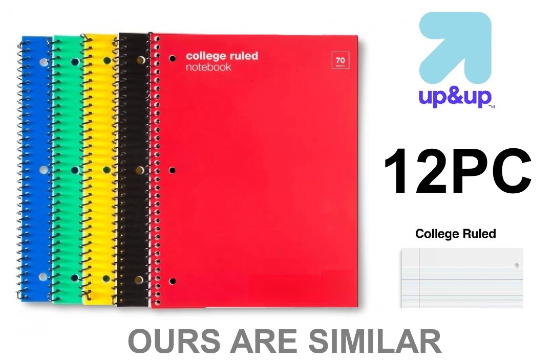 12PC UP&UP College Ruled Subject Flexible Plastic Cover Spiral Notebook - 70 PAGES (Each) - Assorted Colors
