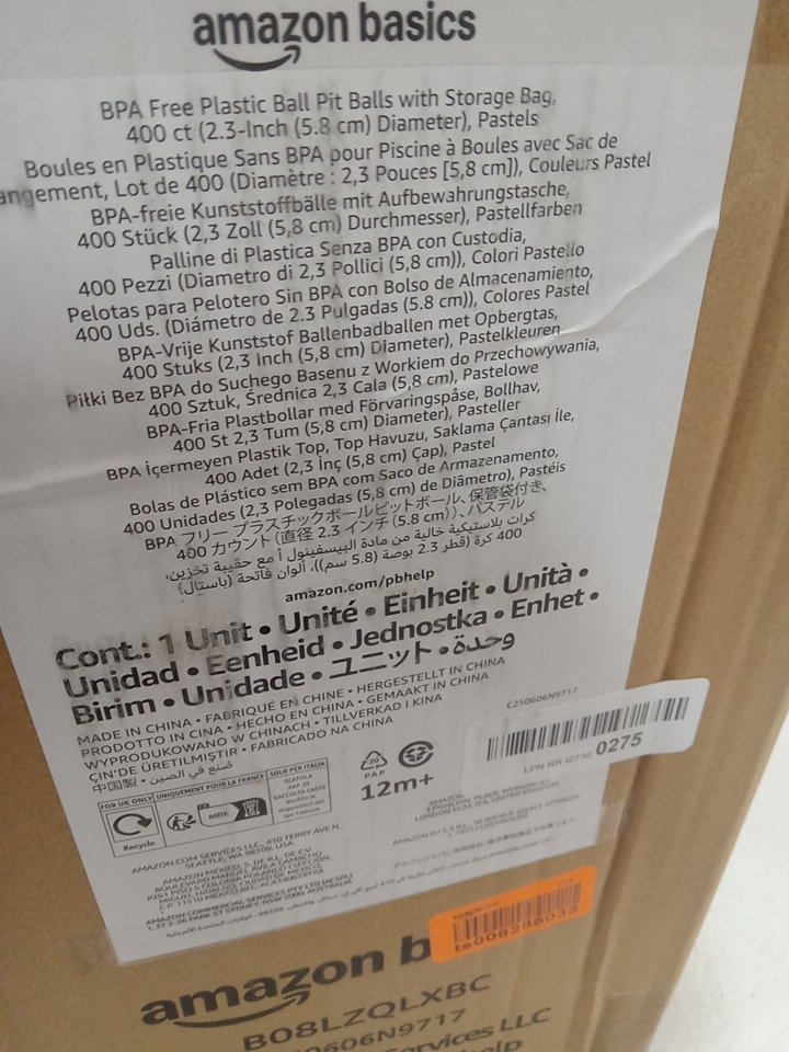 400pk Amazon Basics BPA Free Crush-Proof Plastic Ball, Pit Balls with Storage Bag - Toddlers Kids 12+ Months - 6 bright colors