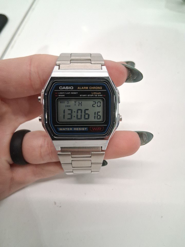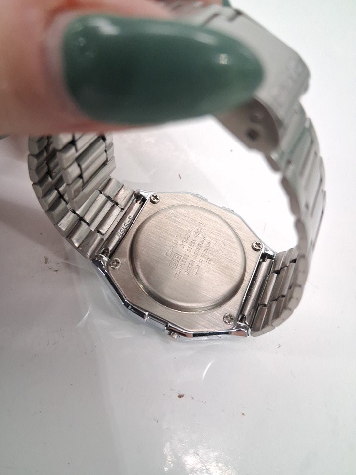 MEN'S CASIO CLASSIC DIGITAL QUARTZ MOVEMENT STAINLESS STEEL BRACELET WATCH - 33MM - SILVER (MODEL: A158WA-1CR)