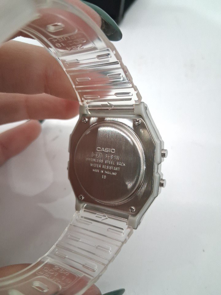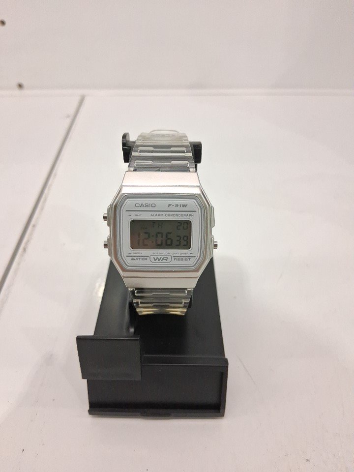 CASIO QUARTZ WATCH WITH RESIN STRAP, CLEAR, 20 (MODEL: F-91WS-7CF)