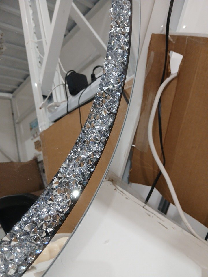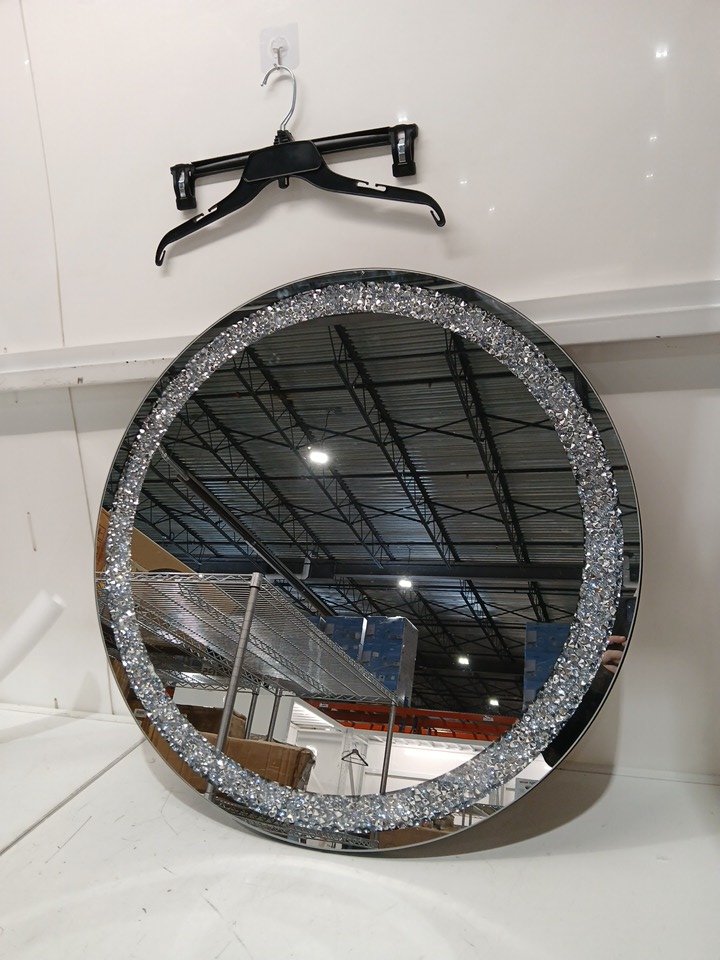 LARGE JEWEL ROUND WALL MIRROR - 27.5" - stainless steel