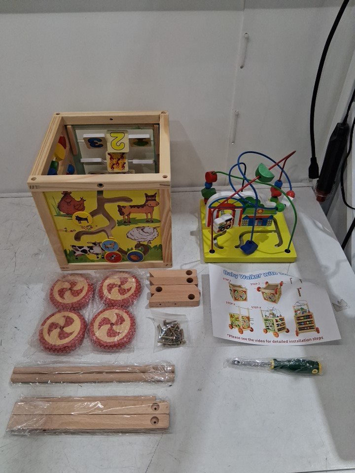 WONDERTOYS 6-IN-1 Wooden Activity Cube Baby Push Walker WITH WHEELS - 12M+