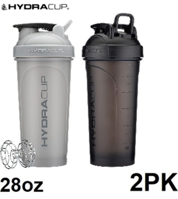 2pk hydracup proflow bpa-free shaker bottle with ball blender whisk - 28oz - grey/black