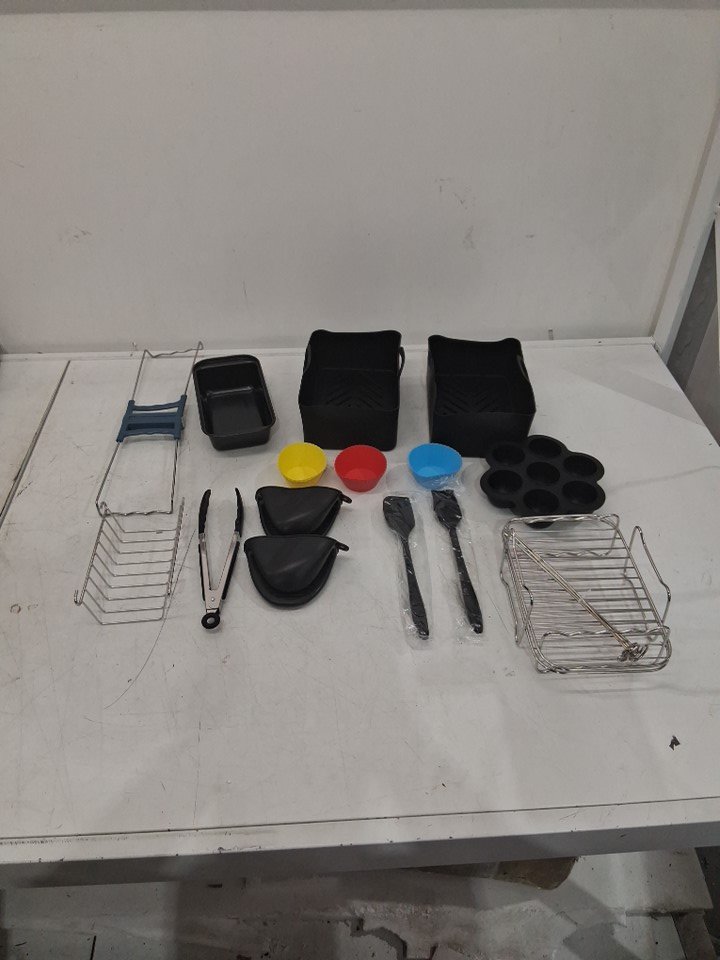 Multifunctional Double Layer Rack with silicone trays and Skewer Set For air Fryers