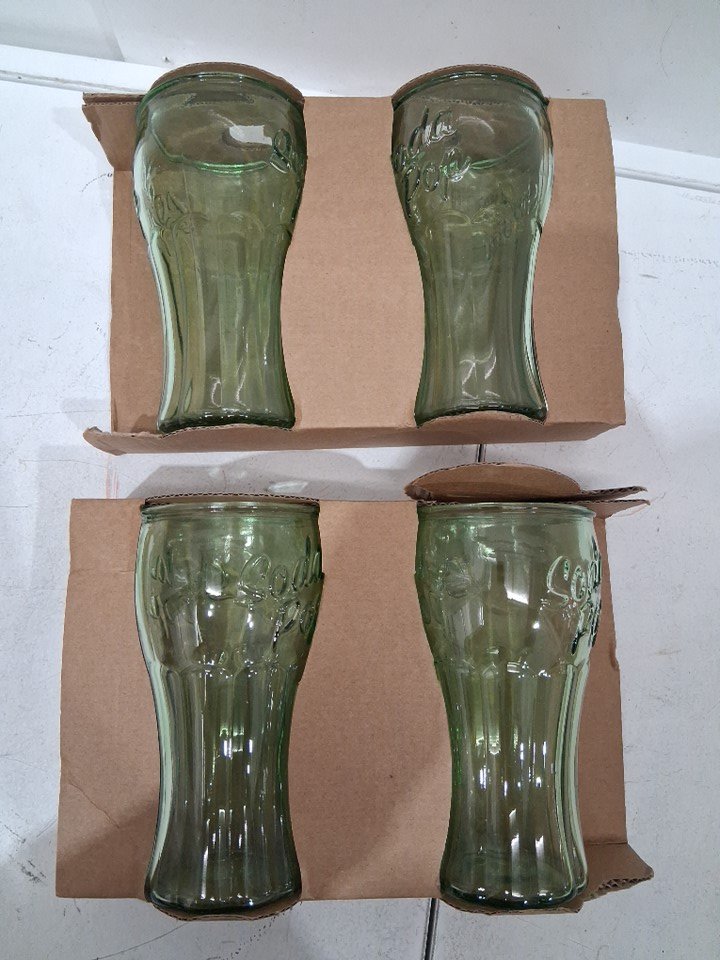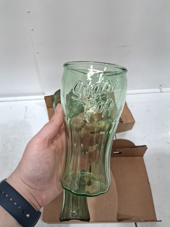 4PK BULLSEYES Playground Americana Soda pop Drinkware glasses - 16oz - green glass