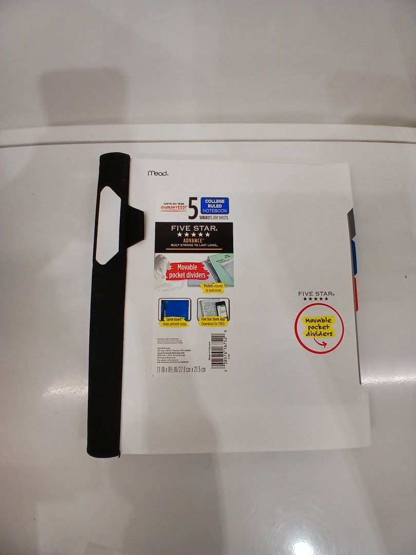 mead Five Star Advance Spiral Notebook - Standard Size - 5 Subject - 200 Sheets -white/ Black