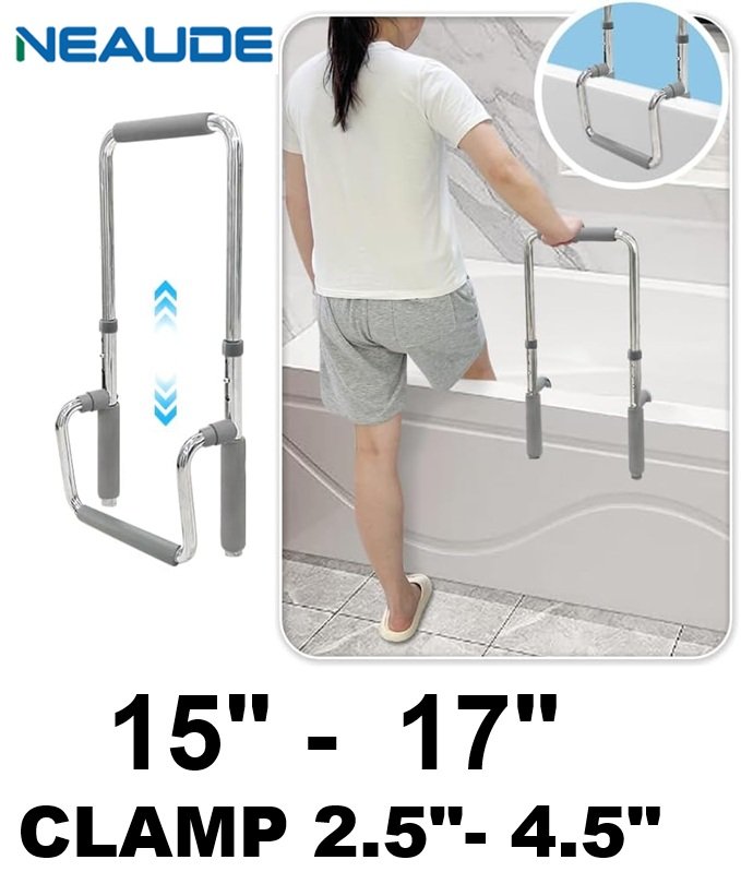 NEAUDE Adjustable Bathtub Safety Rail For Elderly, After Surgery Etc. - Clamp Rail on Bath rail- 15" - 17" - clamp 2.5" - 4.5" (model:‎BWL240315)