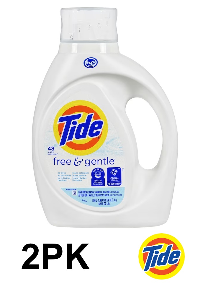 2PK Tide High Efficiency Free & Gentle Liquid Laundry Detergent - 2.48L (EACH) - 64 Loads (EACH)