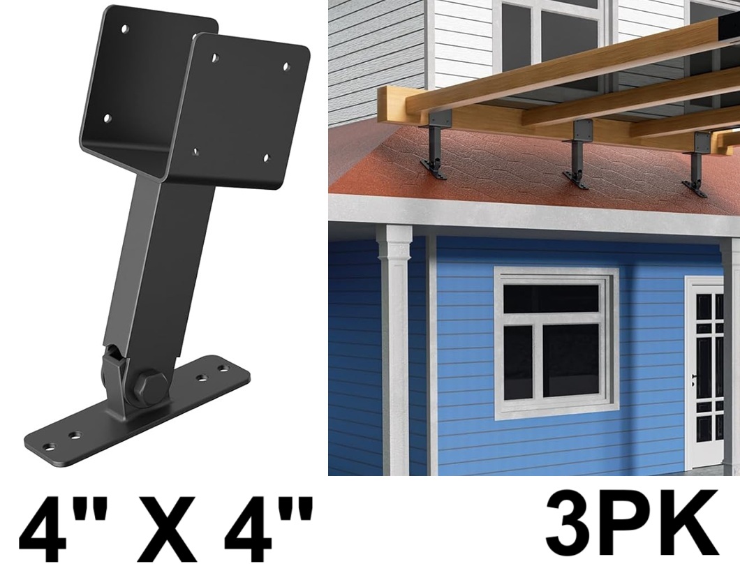 3PK TROPTOLKY Heavy Duty Roof Riser Adjustable Angle Pergola Brackets - 4" X 4" - BLACK