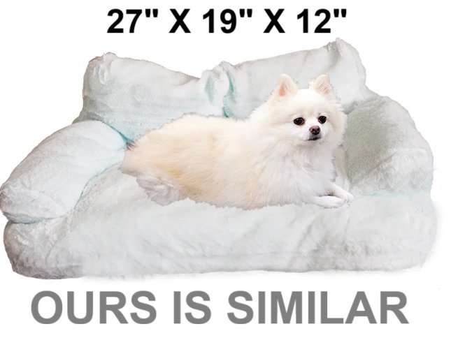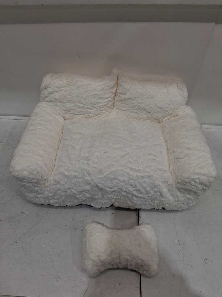 plush couch/bed for dogs/cats with pillow/chew toy and non-slip bottom - 27"x19"x12" - white
