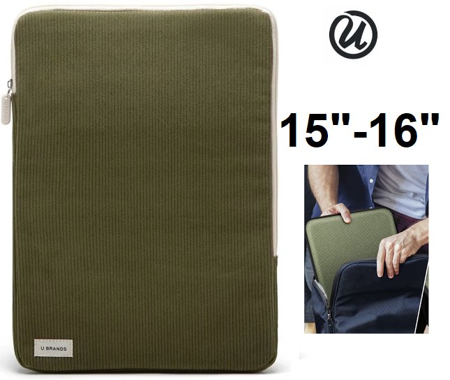 u brands Corduroy Laptop Pouch - screens 15"-16" - Olive
