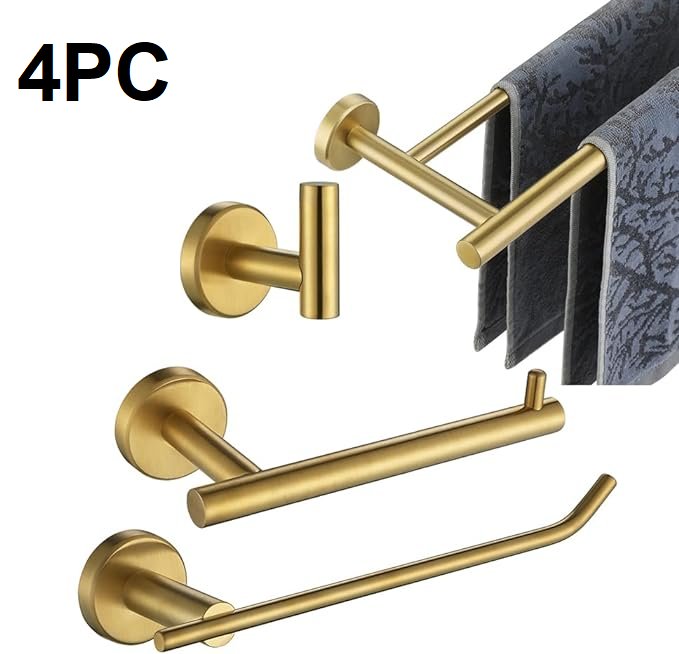4 PC JQK Bathroom Hardware Towel Bar & Bath Accessories Set - gold