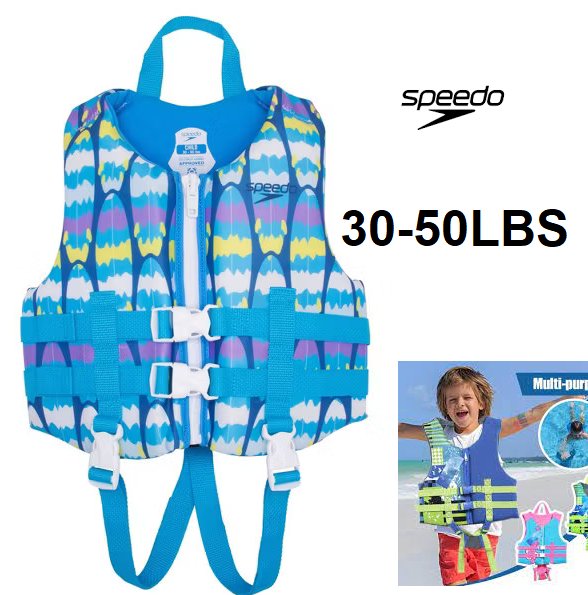 KIDS SPEEDO pfd life jacket vest - 30 - 50 LBS - BLUE/GREEN/PURPLE