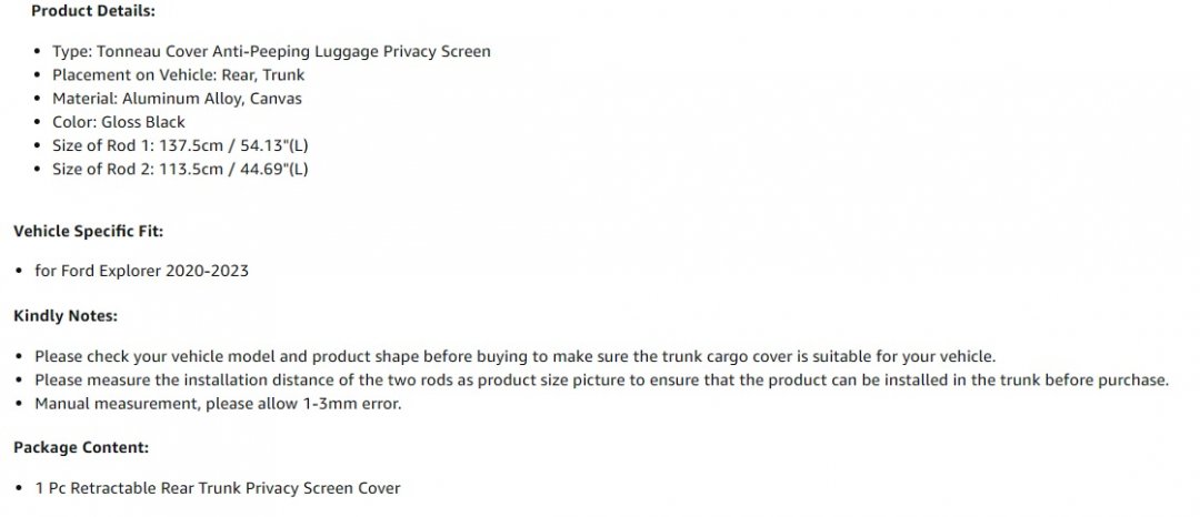 motoforti retractable trunk cargo cover for ford explorer 2020-2023 - canvas/gloss black