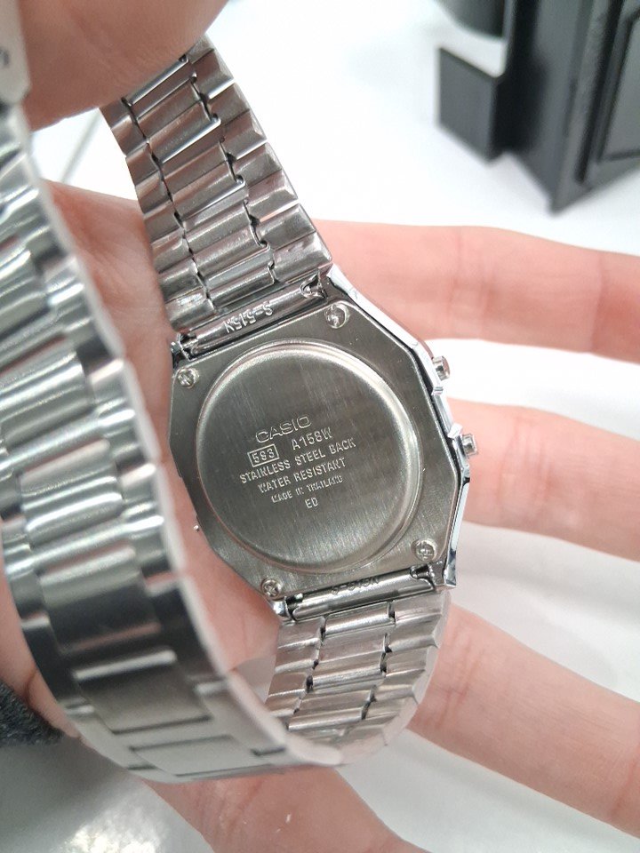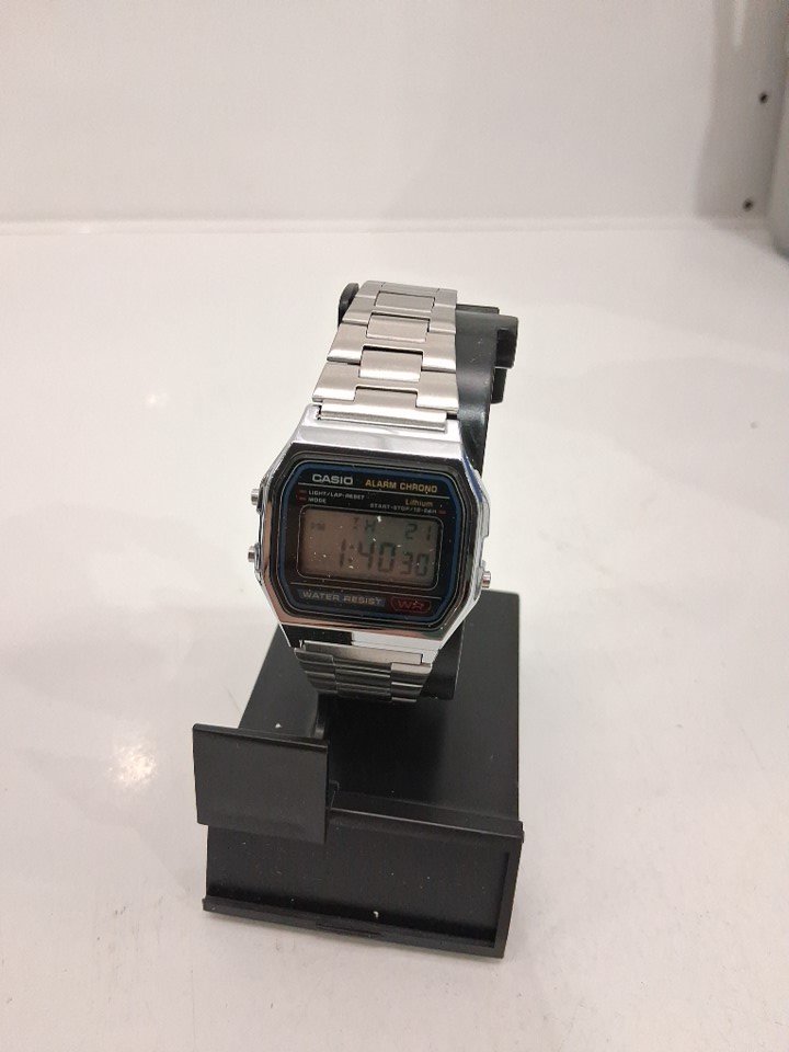 MEN'S CASIO CLASSIC DIGITAL QUARTZ MOVEMENT STAINLESS STEEL BRACELET WATCH - 33MM - SILVER (MODEL: A158WA-1CR)
